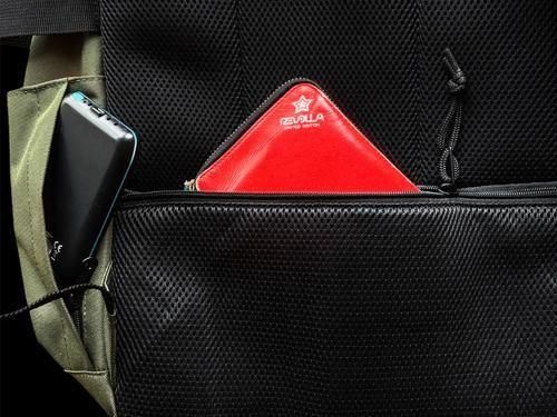 背面に配置されたセキュリティーポケットは、背負ったままでも荷物をスムーズに取り出せる便利な設計